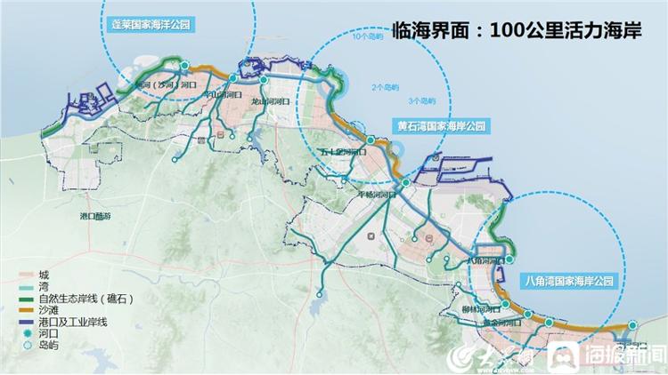 注重陆海统筹,打造北纬37°黄金海岸。坚持保护与修复并重、管控与利用并举,重点保护八角湾、黄石湾自然岸线,修复以平畅河、龙山河为代表的入海河口生境,恢复潮滩和湿地生物群落,构建完整的海岸生物多样性体系。建立陆海一体管控分区,科学划定海岸建筑退缩线,精细化管控海岸带功能布局。建立多维度海岸带景观感知体系,管控4条山海视廊、3组湾岬视廊,设计12处海岸兴趣点和3处海上明信片观景点,打造中国最美海岸带。