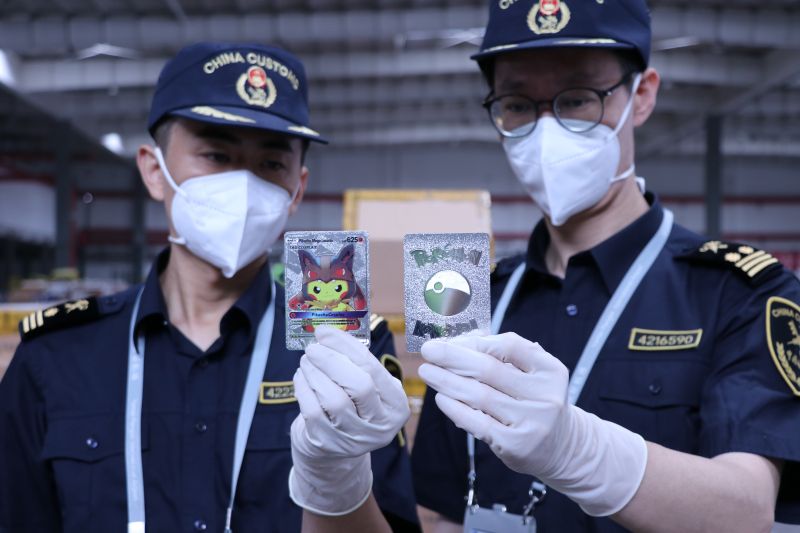 图为:关员展示查获的侵权游戏卡片 近日,烟台海关在出境跨境电商渠道查获侵权金属游戏卡片5万张,这些卡片涉嫌侵犯“POKEMON”(宝可梦)商标专用权。 根据风险布控指令,海关关员在对696票申报品名为“玩具卡片”的出口跨境电商商品进行查验时,发现商品实际为印有“POKEMON”标识的金属游戏卡片,数量共5万张,企业无法提供相应的授权证明。经权利人确认,这些卡片涉嫌侵犯其在海关总署备案的商标专用权。 目前,涉嫌侵权卡片已被海关暂扣,将依法接受后续处置。 | ||||||||